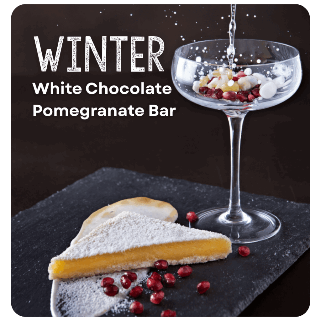 - WINTER: Mascarpone whip, white chocolate, pomegranate